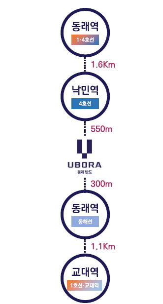 지하철 1호선 동래역 더블역세권과 다양한 시내버스 노선이 가까워 출퇴근과 시내 전역 이동이 편리합니다. 차량 이동 시 온천천로·낙민로 이용이 쾌적하며, 만덕~센텀 고속화도로 개통 시 해운대·센텀까지 단축 이동이 가능합니다. 이처럼 동래 반도유보라 모델하우스는 교통 프리미엄 입지를 직접 경험할 수 있는 공간입니다.